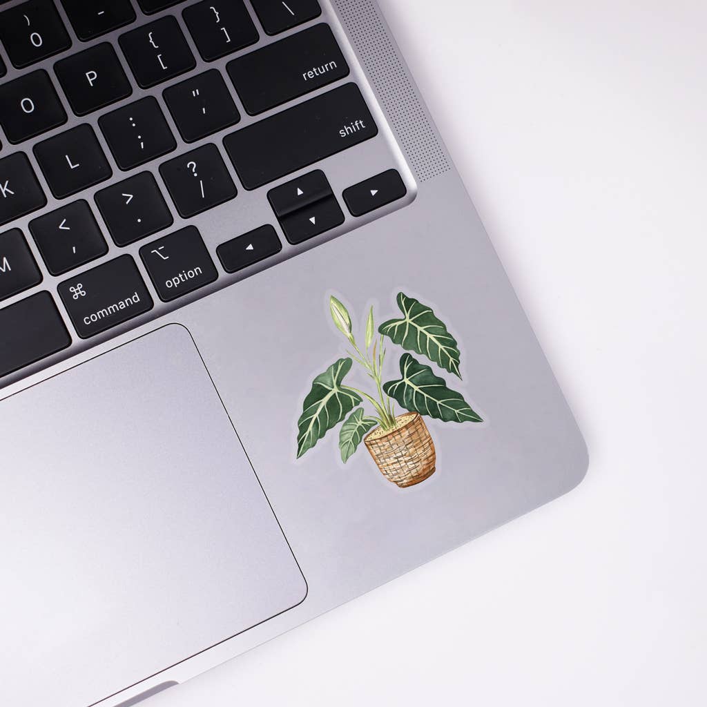 Clear Alocasia Sticker for plant lovers, plant moms, plant dads, house plant fans. You can use them on a water bottle, planner, cell phone, notebook, laptop, iPad and more... 3” tall x 3” wide Weatherproof Vinyl Sticker UV Resistant